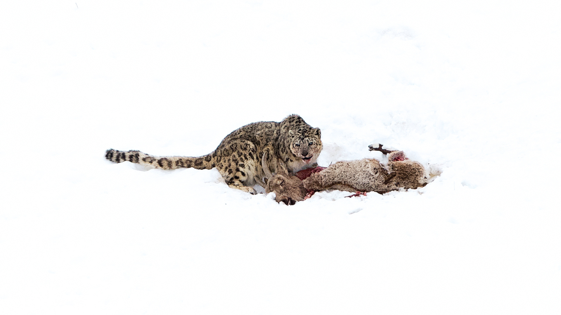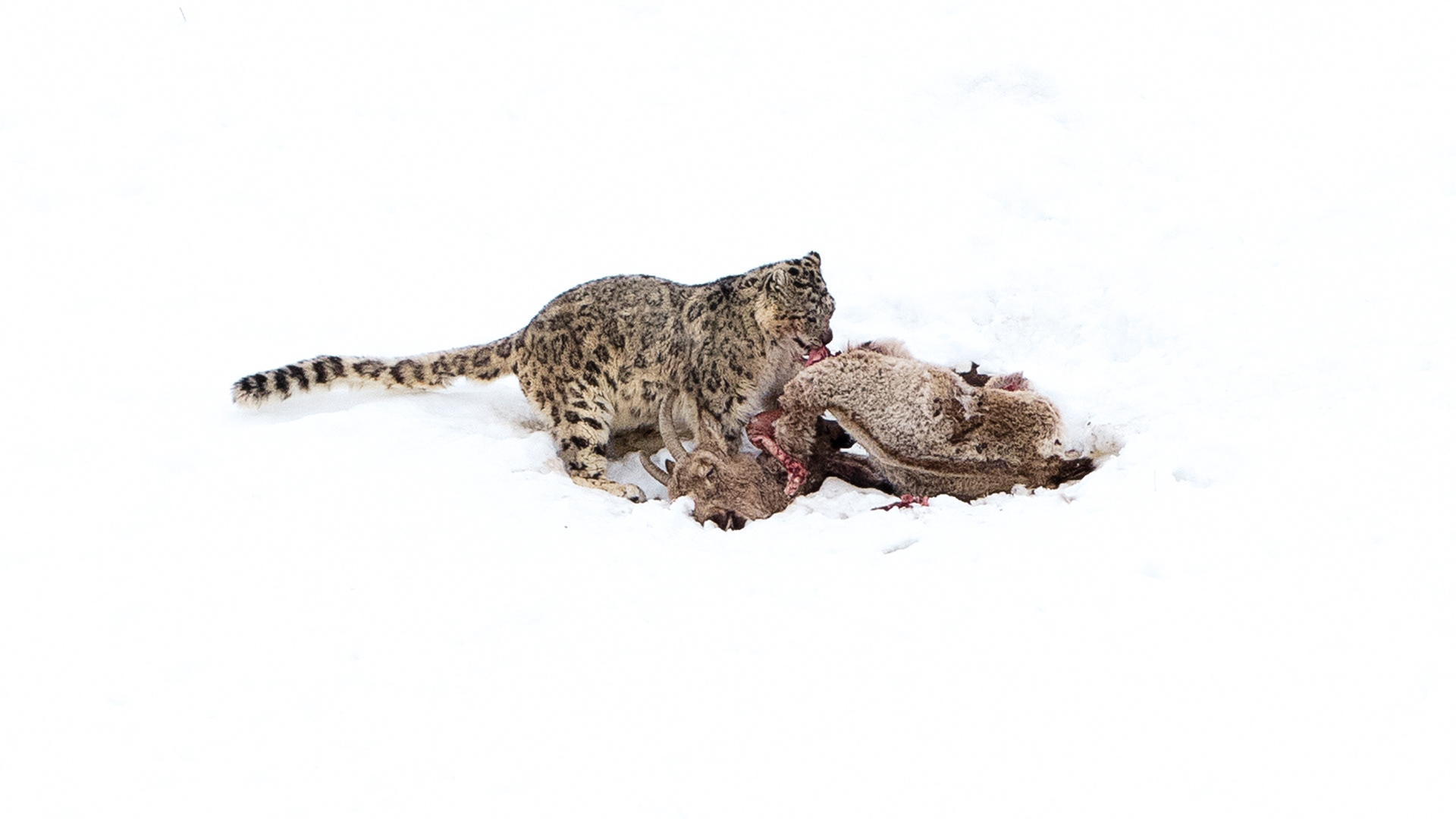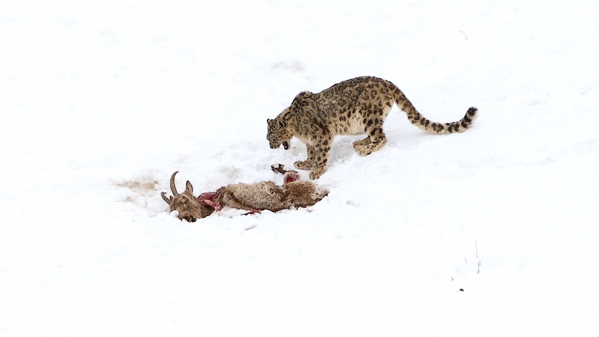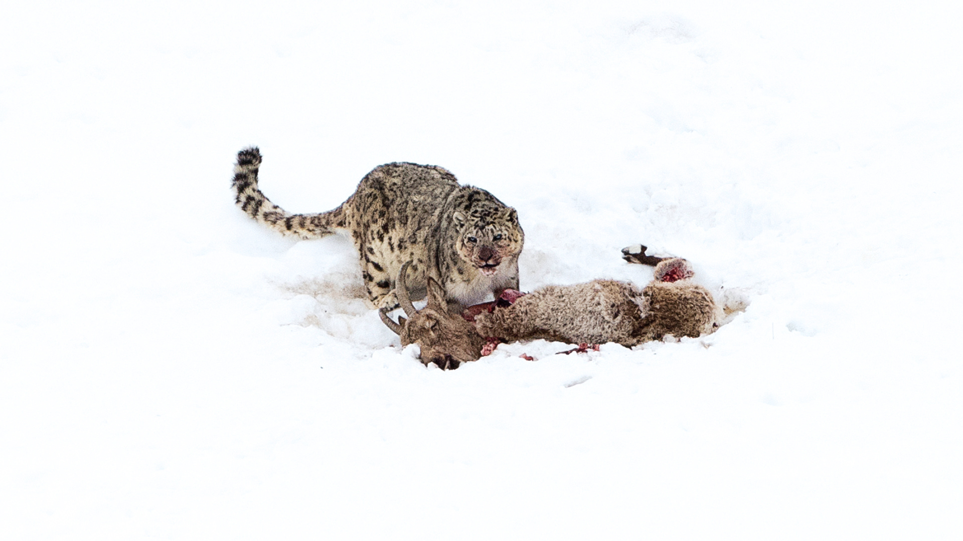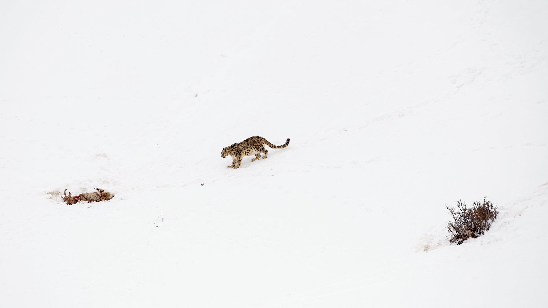 Seeing a Snow Leopard in the wild and on a kill, in these harsh conditions, is extremely rare. It was a very special moment to witness such a sighting and capture it on camera.