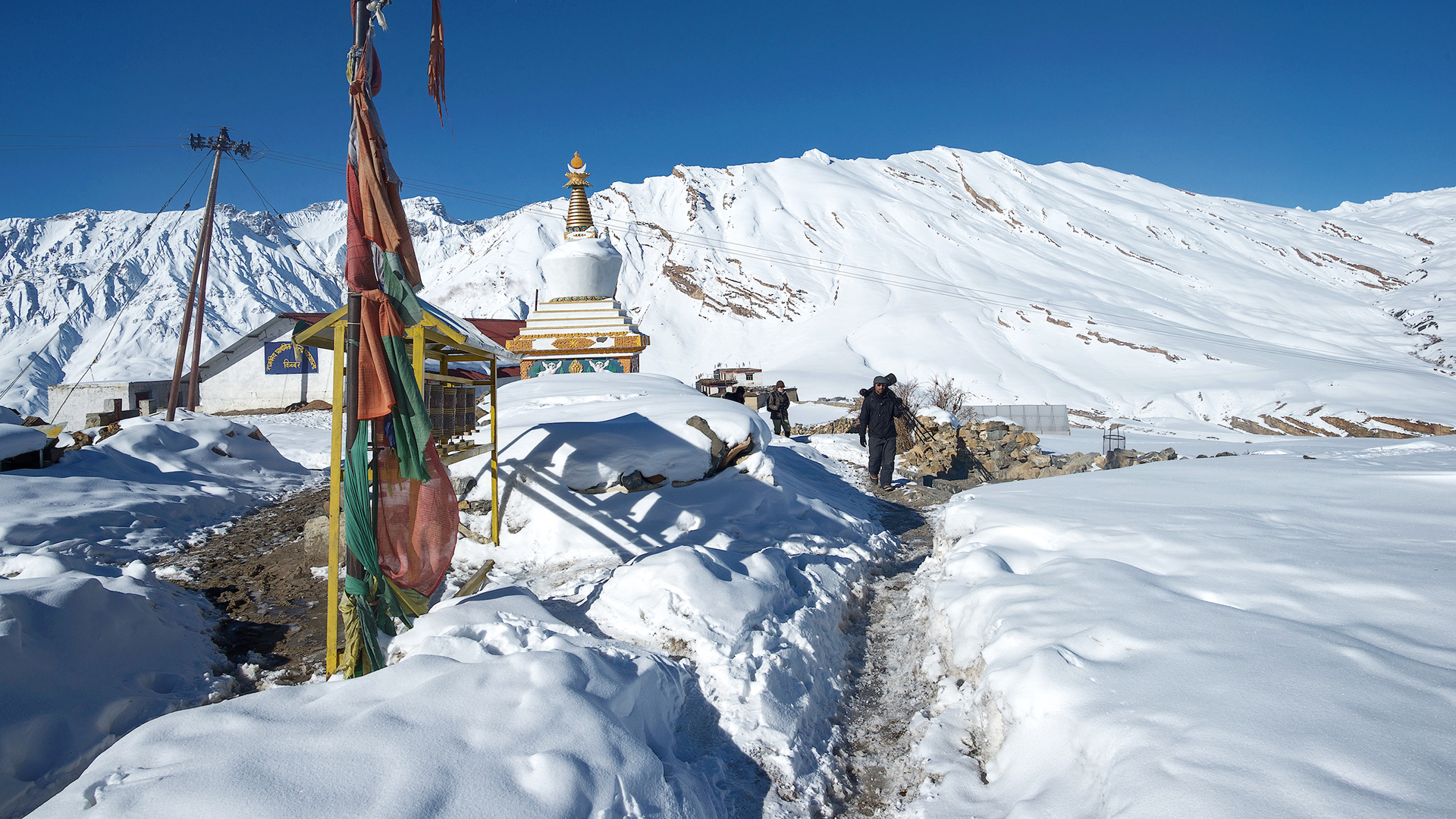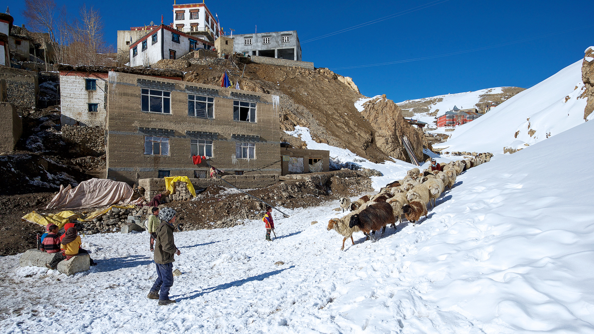 During the winter, extreme conditions, high altitude and remoteness keep the area isolated for about six months of the year. The heavy snow on the mountains brings Blue Sheep (Bharal) and Ibex down near the village and this also brings their predator, the elusive Snow Leopard, close to the village.