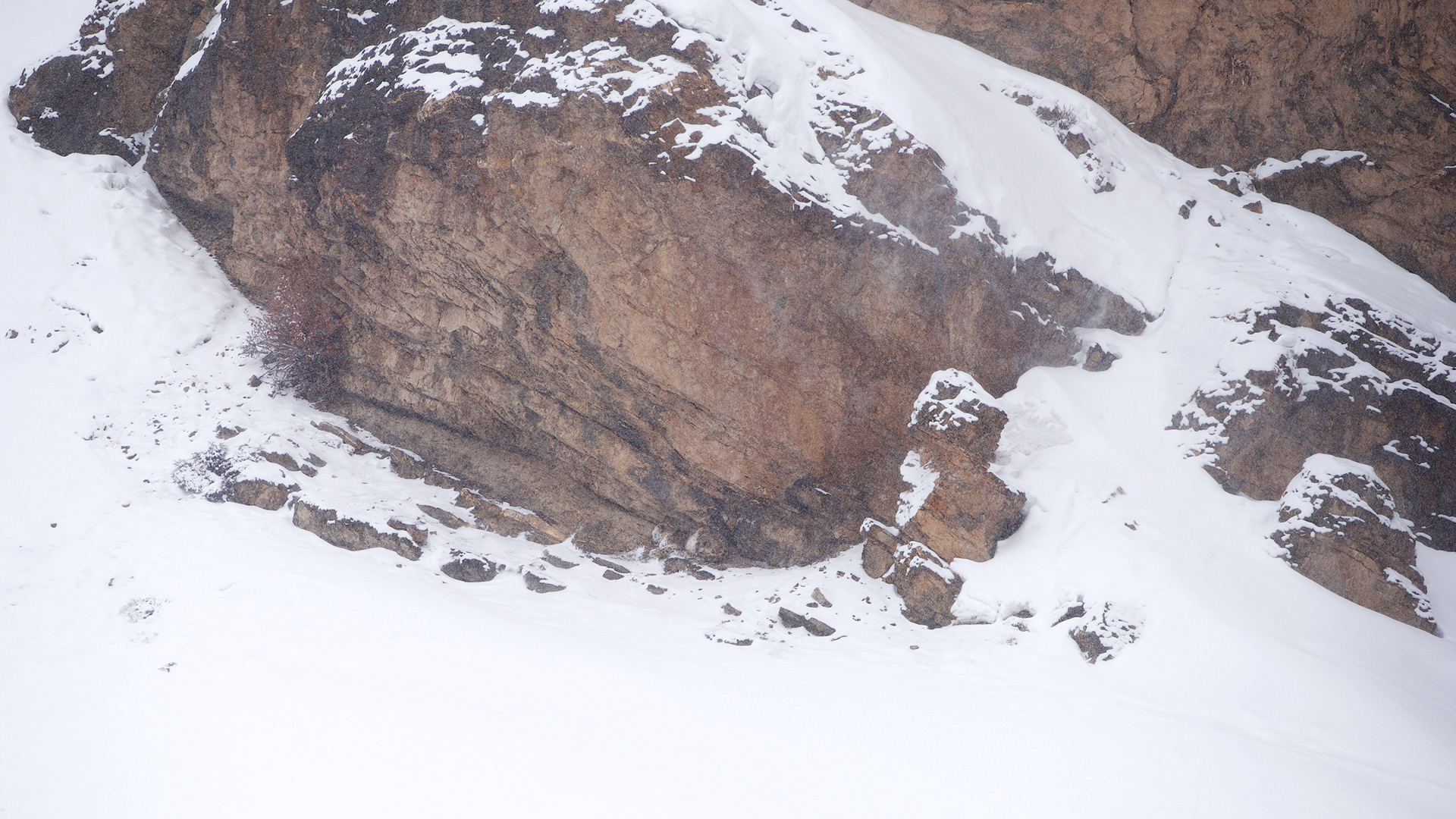 On our second day in Kibber we returned to the same view point as the previous day, however, this time the weather had turned. It was snowing and bone-chillingly cold. The wind caused blizzard conditions, it felt well below zero, especially with the wind chill. We spent the next six hours in the freezing cold but the sight of the Snow Leopard in action in front of us made it all worthwhile, even if it was almost impossible to see at times.