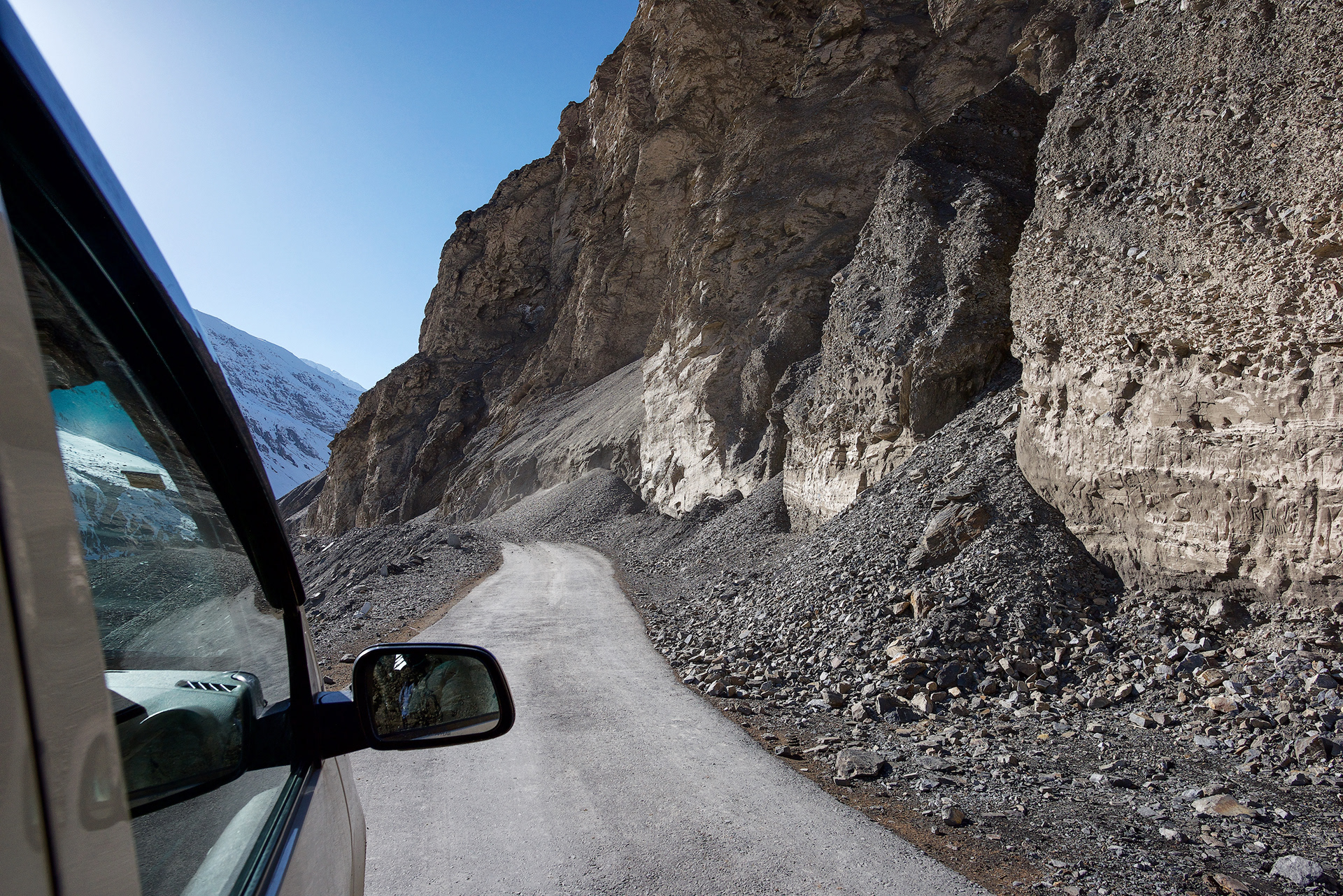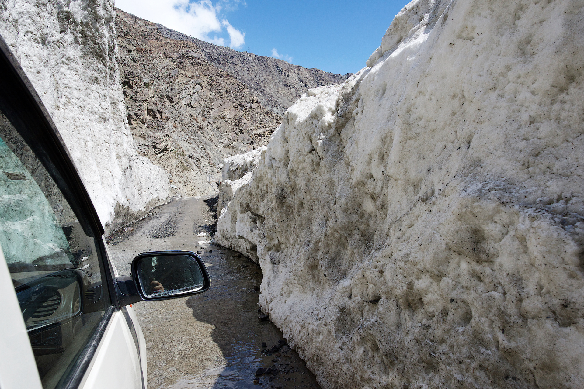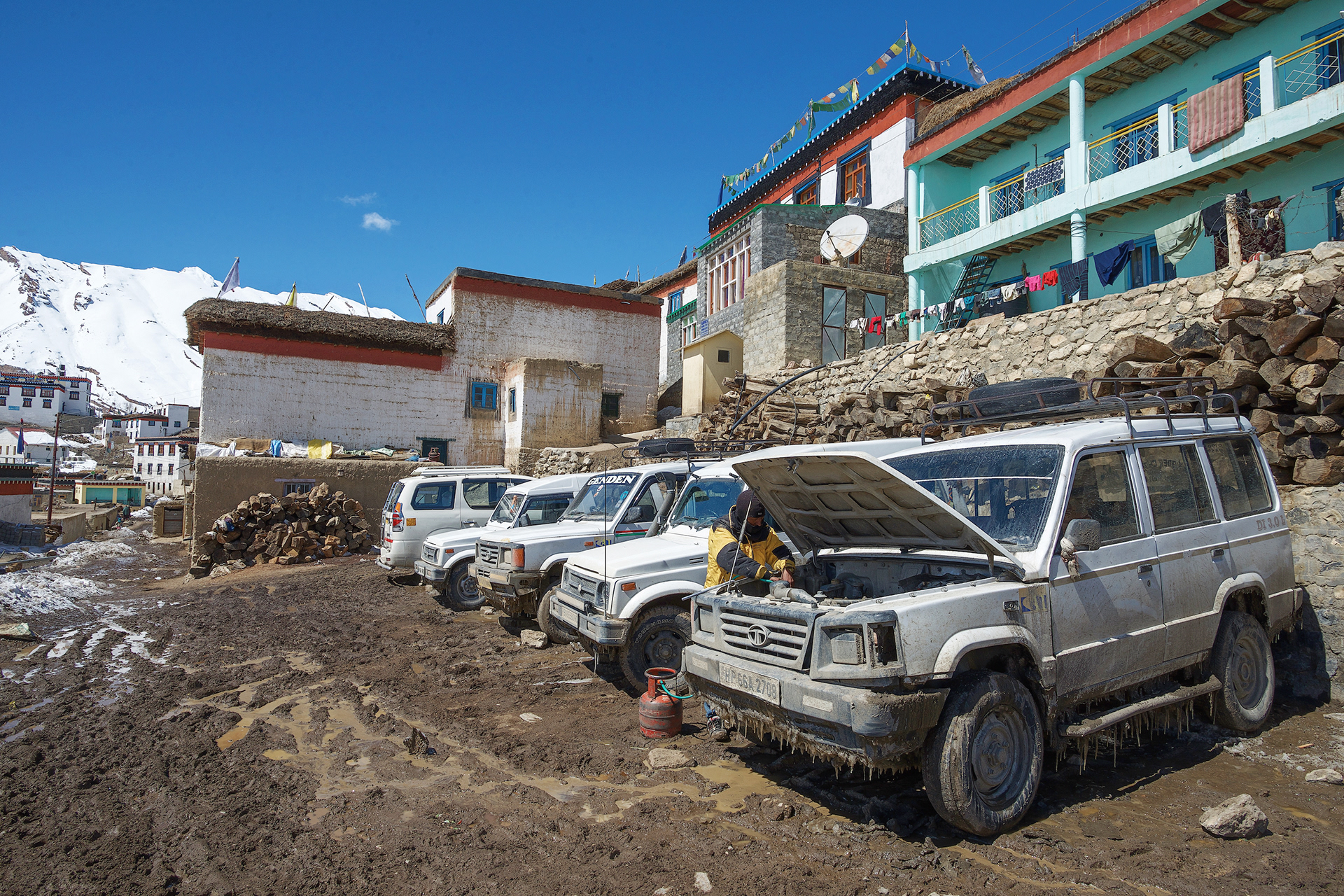 The driver above is using a blow torch to defrost the engine parts under the bonnet! Being at an altitude of over 14,000 ft and with temperatures at night dropping to well below minus 20 degrees, fuel in the tank and hosepipes regularly freezes. In order to avoid this potentially dangerous action, Rakesh, slept overnight in our vehicle. He would wake at regular intervals to start the engine and keep it running for 15-20 minutes, before turning it off and going back to sleep only to wake and repeat after another two to three hours!